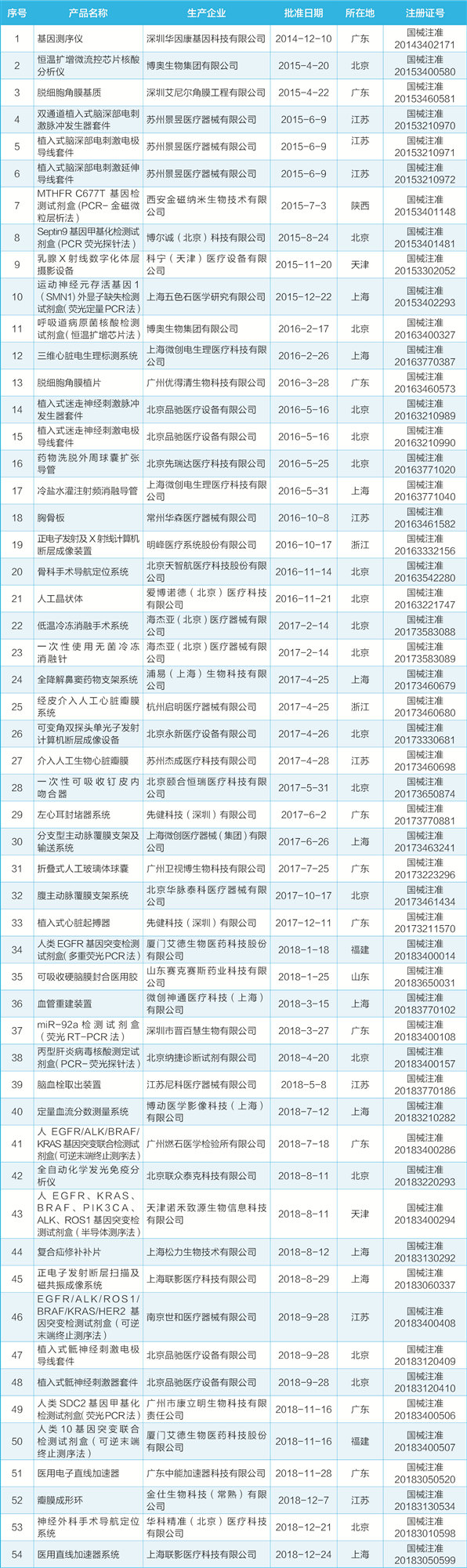 | 神經(jīng)外科手術(shù)導(dǎo)航定位系統(tǒng)、正電子發(fā)射斷層掃描及磁共振成像系統(tǒng)……2018年,國(guó)家藥品監(jiān)管部門批準(zhǔn)了21個(gè)創(chuàng)新性強(qiáng)、技術(shù)含量高、臨床需求迫切的創(chuàng)新產(chǎn)品上市,填補(bǔ)了相關(guān)領(lǐng)域的空白,更好的滿足了人民群眾的健康需求。 審批時(shí)間縮短83天 近年來,國(guó)家藥品監(jiān)管局貫徹落實(shí)《國(guó)務(wù)院關(guān)于改革藥品醫(yī)療器械審評(píng)審批制度的意見》和中辦國(guó)辦《關(guān)于深化審評(píng)審批制度改革鼓勵(lì)藥品醫(yī)療器械創(chuàng)新的意見》深入推進(jìn)醫(yī)療器械審評(píng)審批制度改革,加速醫(yī)療器械創(chuàng)新發(fā)展。自2014年2月《創(chuàng)新醫(yī)療器械特別審批程序》發(fā)布以來,截至2018年12月31日,已有197個(gè)產(chǎn)品進(jìn)入創(chuàng)新醫(yī)療器械特別審查通道, 54個(gè)創(chuàng)新產(chǎn)品獲批上市。創(chuàng)新產(chǎn)品的審評(píng)審批時(shí)間較其他普通三類首次注冊(cè)產(chǎn)品平均縮短83天,加快了創(chuàng)新產(chǎn)品的上市步伐。 從批準(zhǔn)產(chǎn)品所在地來看,產(chǎn)業(yè)大省創(chuàng)新醫(yī)療器械數(shù)量排名靠前,分別是北京18個(gè)、廣東10個(gè)、上海10個(gè)、江蘇8個(gè)。從批準(zhǔn)產(chǎn)品的類型來看,體外診斷試劑13個(gè),診斷類設(shè)備9個(gè),植入類醫(yī)療器械22個(gè)。 首創(chuàng)產(chǎn)品優(yōu)勢(shì)顯著 無源植入類醫(yī)療器械中,值得一提的是折疊式人工玻璃體球囊。該產(chǎn)品由球囊、引流管和引流閥組成,由醫(yī)用硅橡膠材料制成,適用于嚴(yán)重視網(wǎng)膜脫離,不能用現(xiàn)有的玻璃體替代物進(jìn)行治療的患者。該產(chǎn)品是我國(guó)獨(dú)立研制的創(chuàng)新產(chǎn)品,屬于國(guó)際首創(chuàng)。該產(chǎn)品可長(zhǎng)期填充在眼內(nèi),解決了玻璃體替代物不能長(zhǎng)期停留在眼內(nèi)、不能長(zhǎng)期頂壓視網(wǎng)膜或需反復(fù)手術(shù)等問題,避免患者眼球摘除和植入義眼座。 有源植入產(chǎn)品中"植入式迷走神經(jīng)刺激脈沖發(fā)生器套件"和"植入式迷走神經(jīng)刺激電極導(dǎo)線套件"兩個(gè)組合使用產(chǎn)品是迷走神經(jīng)刺激治療癲癇病的首例國(guó)產(chǎn)產(chǎn)品。"植入式迷走神經(jīng)刺激脈沖發(fā)生器套件"由脈沖發(fā)生器、測(cè)試電阻、力矩螺絲刀和控制磁鐵組成。"植入式迷走神經(jīng)刺激電極導(dǎo)線套件"由電極、造隧道工具(包括穿刺工具和套管)和固定夾組成。上述兩個(gè)產(chǎn)品配合使用,對(duì)藥物不能有效控制的難治性癲癇患者能起到控制癲癇發(fā)作的作用。 診斷類產(chǎn)品中"正電子發(fā)射斷層掃描及磁共振成像系統(tǒng)" 相比其他成像方式具有顯著優(yōu)勢(shì)。該產(chǎn)品包括PET(正電子發(fā)射斷層掃描)及MR(磁共振)兩部分,實(shí)現(xiàn)了PET成像及MR成像的一體化結(jié)合,可實(shí)現(xiàn)同步且等中心采集生理、解剖和生化代謝信息,并將這些信息配準(zhǔn)和融合。PET/MR成像集合了PET和MR兩種成像模式的優(yōu)勢(shì),具有多模態(tài),多對(duì)比度,高分辨率,高靈敏度和低輻射劑量等優(yōu)點(diǎn)。臨床實(shí)踐已經(jīng)證明了其在頭頸部腫瘤、腹部腫瘤、退行性神經(jīng)病變、全身淋巴瘤等疾病診斷中的明確作用。 治療設(shè)備中骨科手術(shù)導(dǎo)航定位系統(tǒng)采用6自由度機(jī)械臂、兼容2D和3D醫(yī)學(xué)影像等專利技術(shù),各項(xiàng)性能指標(biāo)達(dá)到國(guó)際同類產(chǎn)品水平。該系統(tǒng)由主機(jī)、機(jī)械臂、手術(shù)計(jì)劃與控制軟件、光學(xué)跟蹤系統(tǒng)、主控臺(tái)車和導(dǎo)航定位工具包組成,用于在脊柱外科和創(chuàng)傷骨科開放或經(jīng)皮手術(shù)中以機(jī)械臂輔助完成手術(shù)器械或植入物的定位。適用于采用創(chuàng)傷骨科空心螺釘內(nèi)固定術(shù)和脊柱螺釘內(nèi)固定術(shù)的患者,可以有效保證螺釘置入的精度,縮短手術(shù)時(shí)間,減少X線輻射損傷,減輕患者損傷。 國(guó)家藥品監(jiān)管部門批準(zhǔn)創(chuàng)新醫(yī)療器械列表: |
