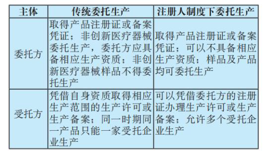 2.2 注冊人制度下委托生產(chǎn) 的特 點(diǎn) 注冊人制度將委托生產(chǎn)主體范 圍擴(kuò)大,委托方不再局限于生產(chǎn)企業(yè),受 托方可以結(jié)合委托方 需求及其 資源獲得相應(yīng)的生產(chǎn)許可,與傳統(tǒng)委托生 產(chǎn)的對比見表 1,這樣可 以整合委托雙方 的資源, 促進(jìn)行業(yè)精細(xì)分工, 使專業(yè)人干專業(yè)事是 醫(yī)療器械行業(yè)發(fā)展一大進(jìn)步。 表 1 醫(yī)療 器械 注冊 人 制 度 下 的 委托 生產(chǎn) 與傳 統(tǒng)委 托 生產(chǎn) 的對 比表